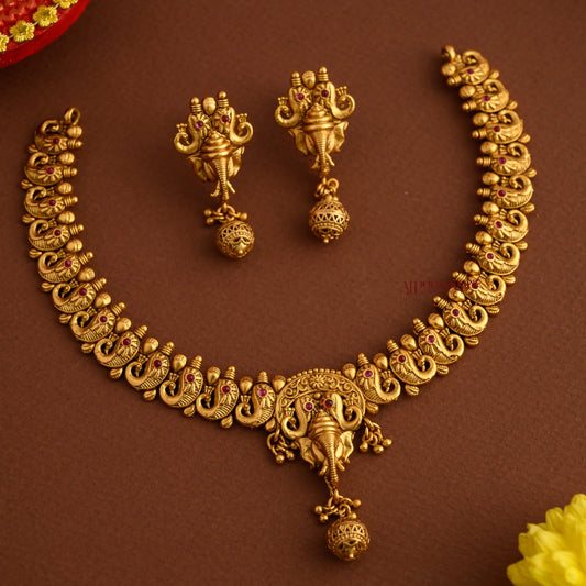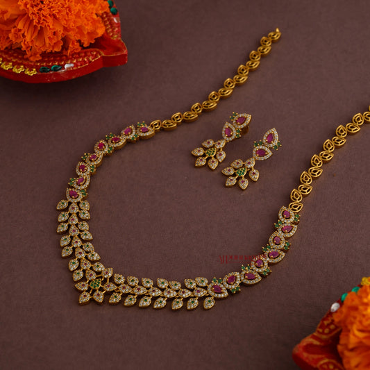Krishna Kundan Jadau Invisible Necklace - Ruby with Green