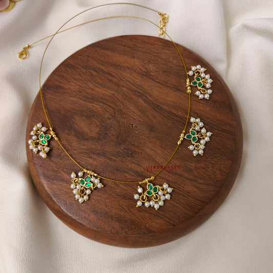 Leaf Kundan Jadau Invisible Necklace - Full Green