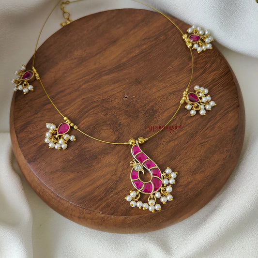 Peacock Kundan Jadau Invisible Necklace - Pink