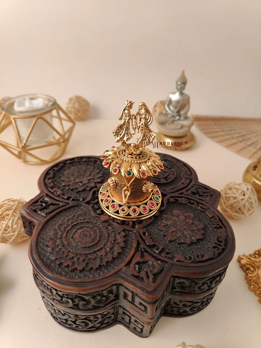 Classy Radhey Krishna Gold Look Alike Kum Kum Box
