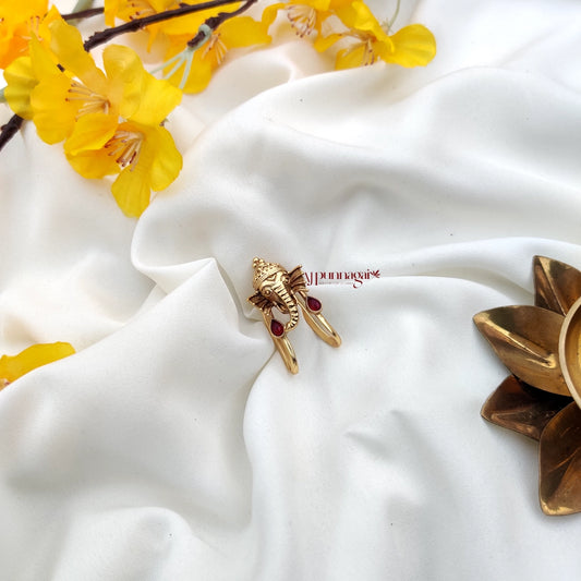 Traditional Lord Ganesha motifs vanki type Finger Ring - Ruby