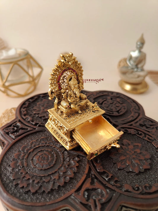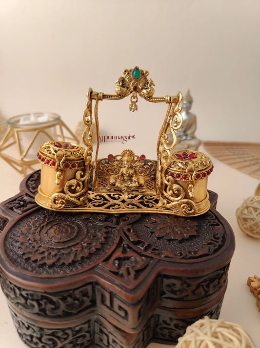 Temple Style Gold Look Alike Lakshmi Kum Kum Box