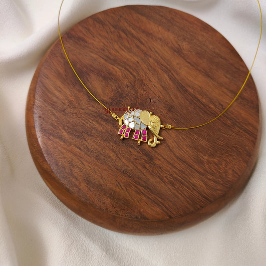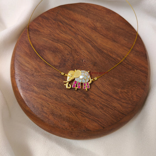 Jadau Elephant Invisible Necklace, Left - Mother of Pearl with Pink