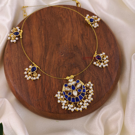 Beautiful Peacock Kundan Jadau Invisible Necklace - Blue with Pink
