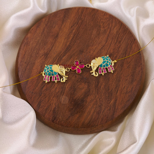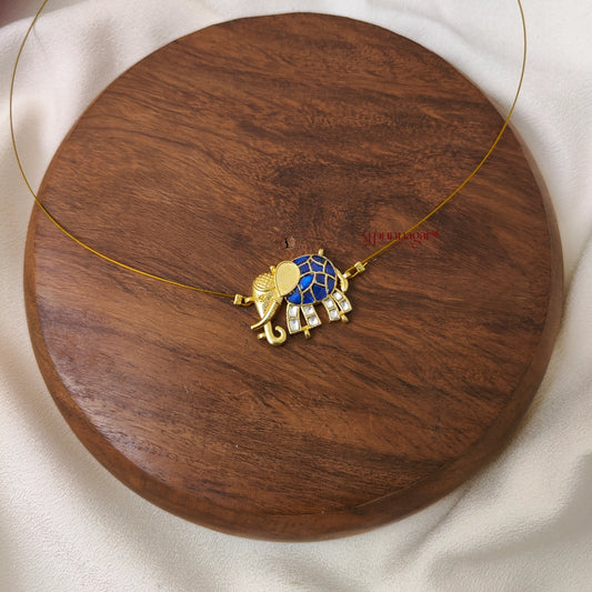 Elephant Kundan Jadau Invisible Necklace Left - Blue