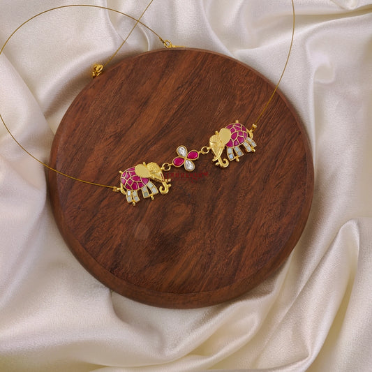 Unique Elephant Kundan Jadau Invisible Necklace - Ruby