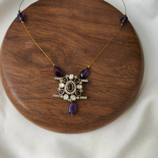 Dancing Peacock Kundan Jadau Invisible Necklace - Green With Ruby - Left