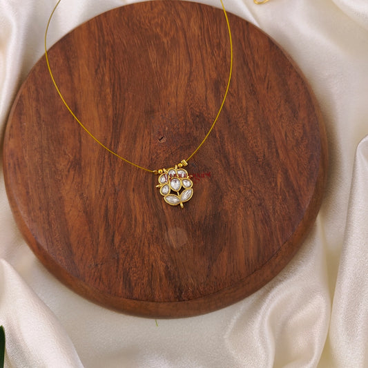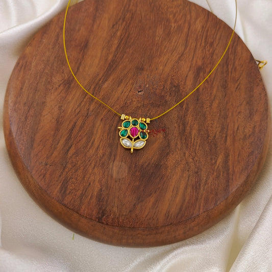 Floral Kundan Jadau Invisible Necklace - Green With Ruby