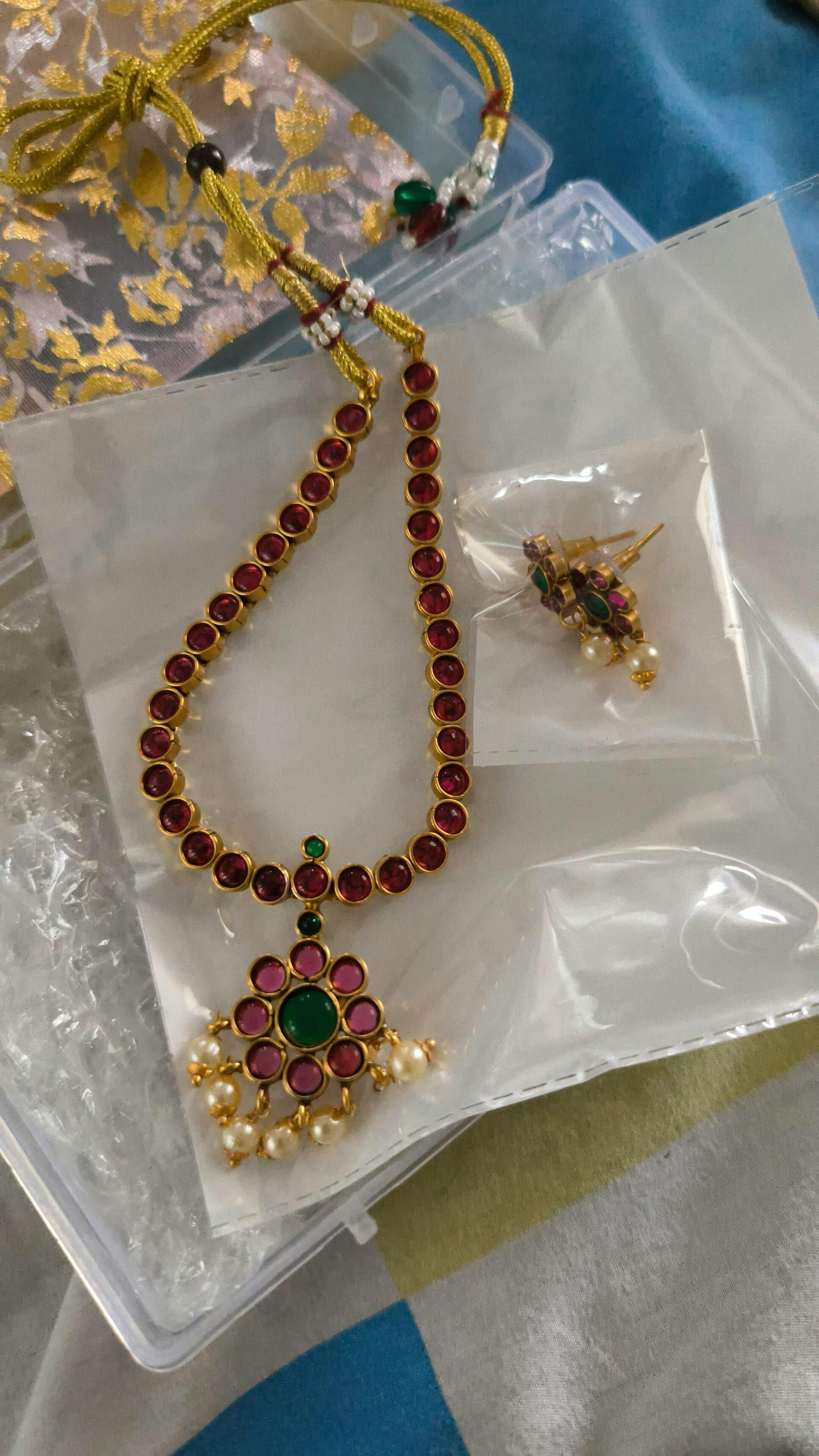 Traditional Kemp Stone Attigai - Ruby & Green